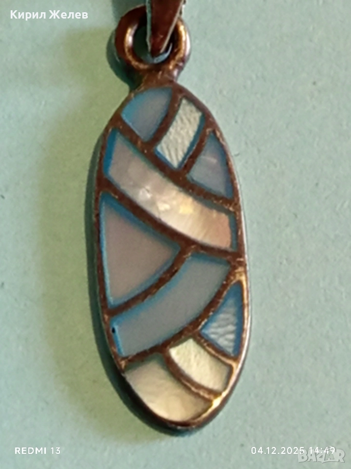 Винтидж сребърна висулка с инкростация на СЕДЕФ в сини и бели нюанси 42628