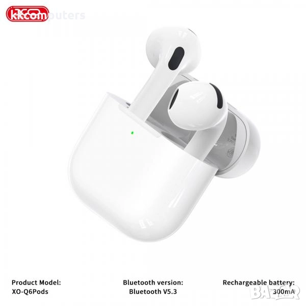 Bluetooth Handsfree Wireless XO-Q6 Pods /Бял/ Баркод : 2404151, снимка 1 - Bluetooth слушалки - 52651193 Bluetooth Handsfree Wireless XO-Q6 Pods /Бял/ Баркод : 2404151, снимка 2 - Bluetooth слушалки - 52651193 Bluetooth Handsfree Wireless XO-Q6 Pods /Бял/ Баркод : 2404151, снимка 3 - Bluetooth слушалки - 52651193 1/3