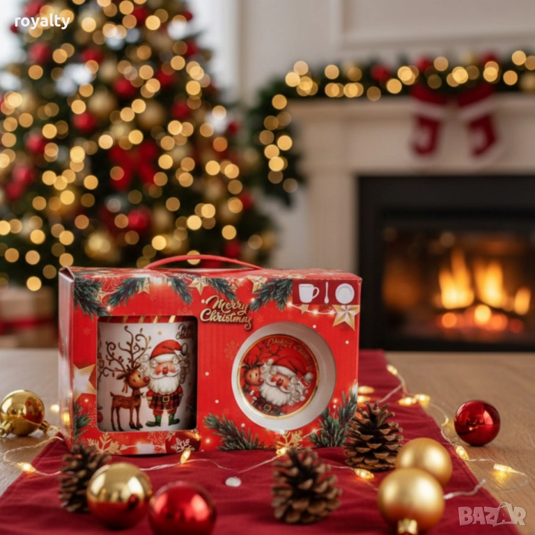 Премиум коледен подаръчен сет – керамична чаша с аксесоари