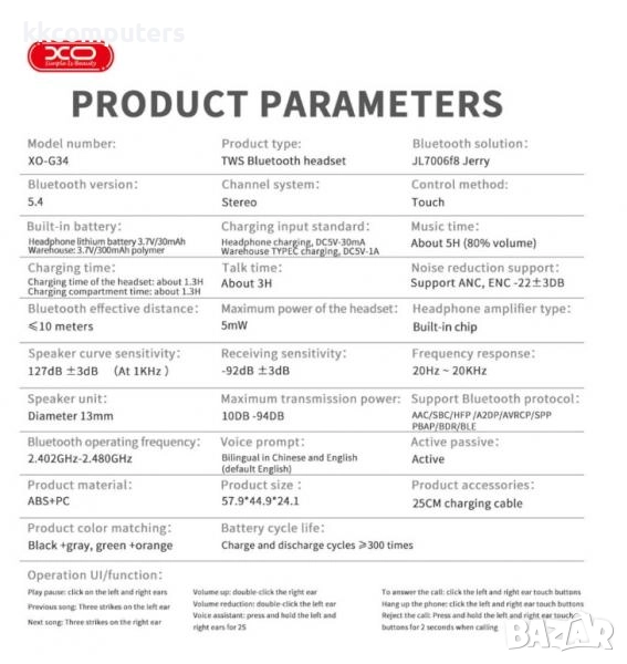 Bluetooth Handsfree Wireless XO-G34 DUAL MIC / ANC + ENC /Черен/ Баркод : 2404148 → Обява 52651288