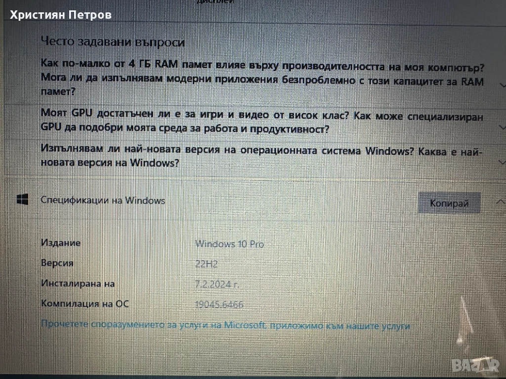 Лаптопа е с инсталиран Windows 10 Professional, лицензиран и на лаптопа са инсталирани всички необходими допълнителни приложения за работа. Също така е направена профилактика като смяна на термопаста и термоподложки. Лаптопът е като нов и е идеален за ежедневна употреба.