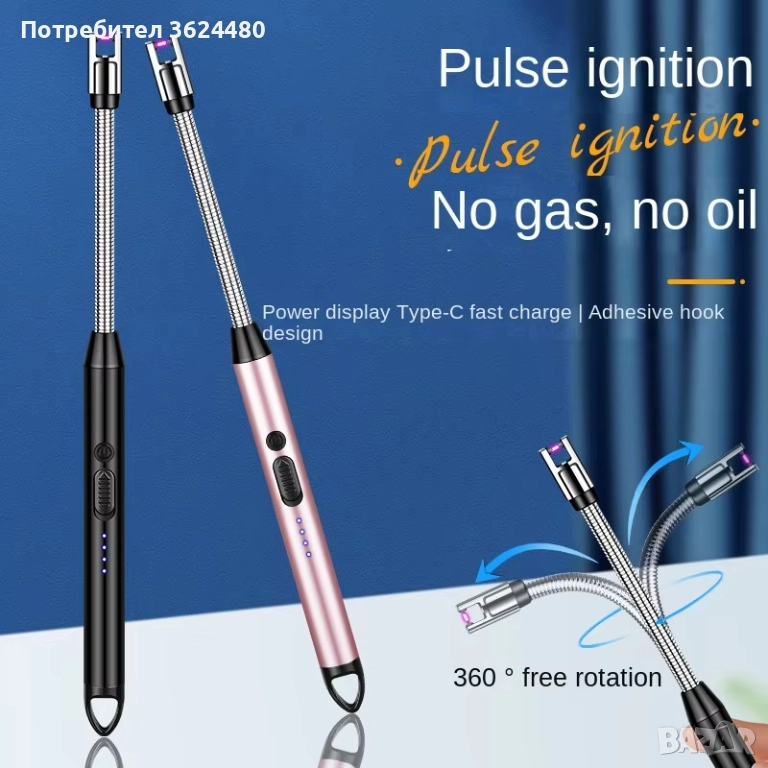 360° гъвкава глава: Извитият дизайн осигурява лесен достъп до труднодостъпни места, като свещи в дълбоки съдове или BBQ грилове.
