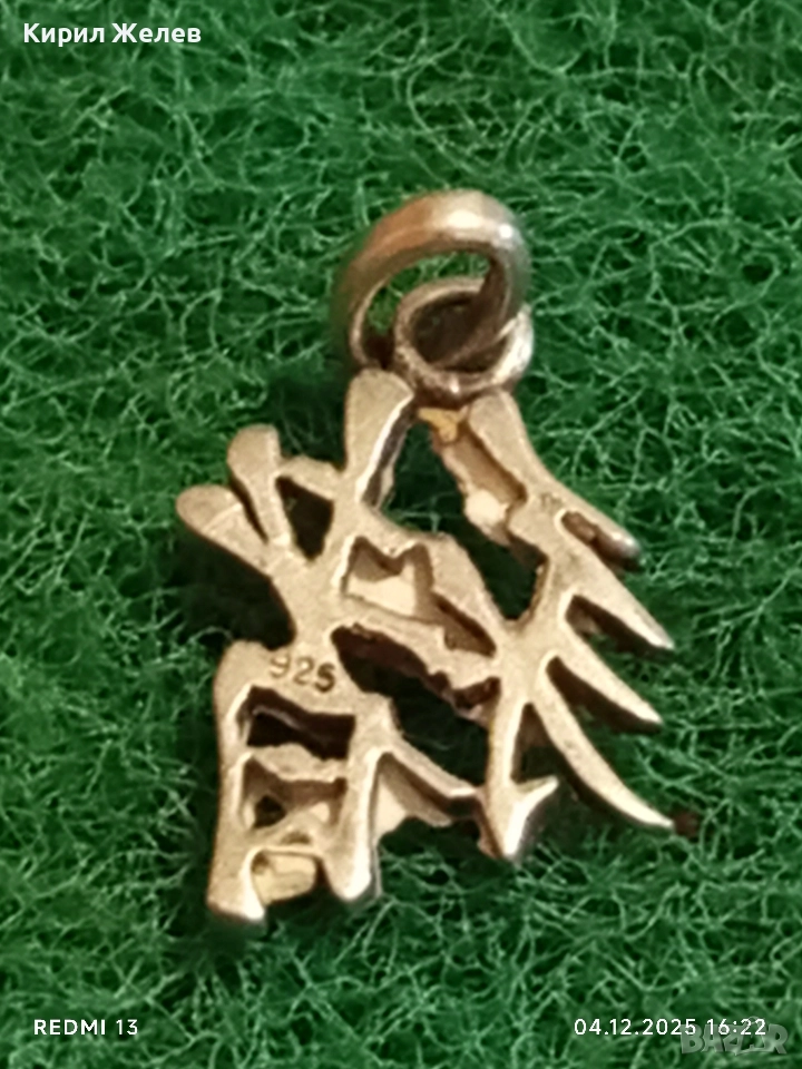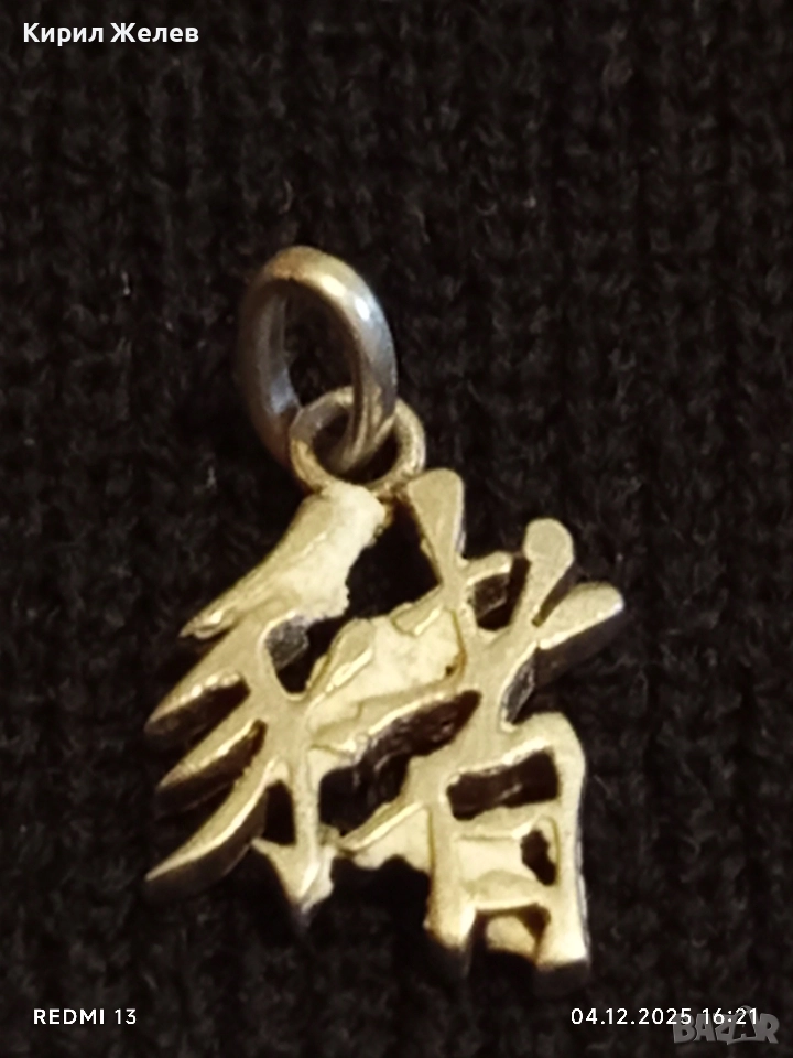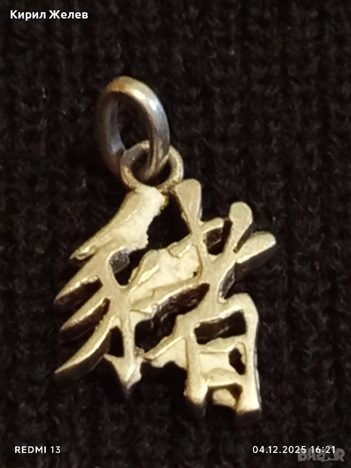Сребърен медальон с Китайски йероглиф майсторска изработка 52351