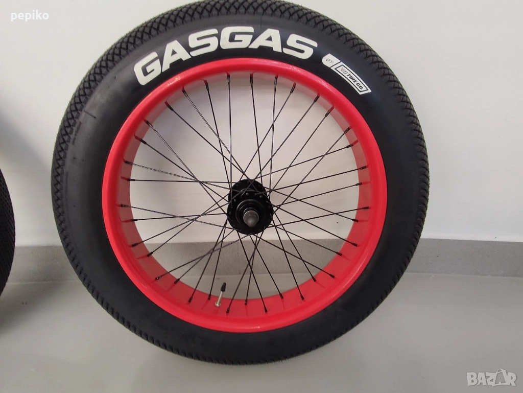 Комплект алуминиеви капли за фет байк 20 цола,комплект нови алуминиеви капли за фет байк окомплектовани с вътрешна и външни гуми 20 цола,предна главина с фабрични капсуловани лагери,задна главина с Ел.мотор BAFANG,задна главина на шлици за 7-8-9-10 венеца,гуми със спортен грайфер GASGAS 20 х 4.