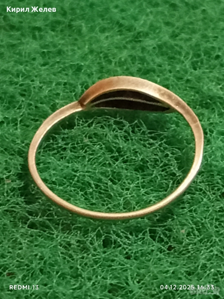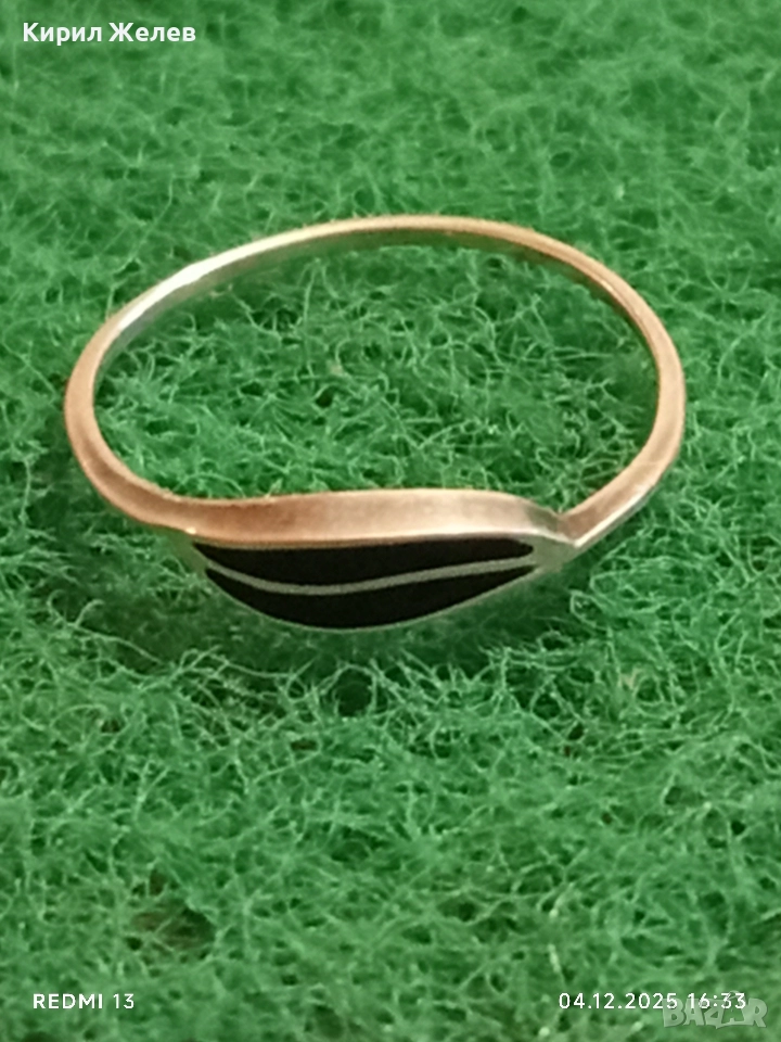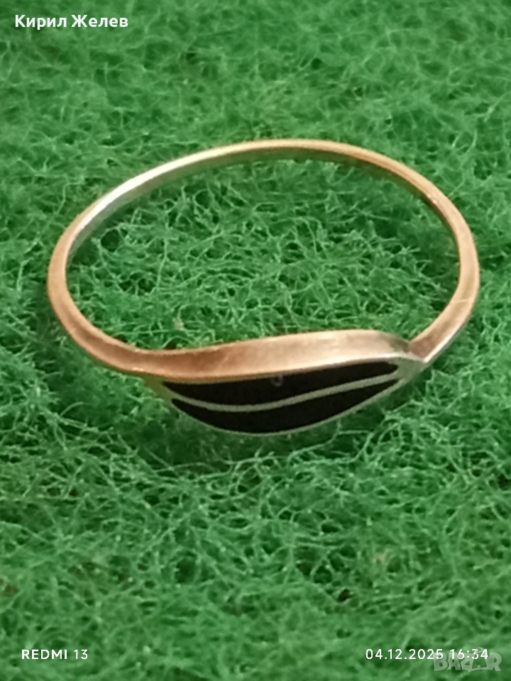 Елегантен нежен сребърен пръстен с черен емайл много красив 52414