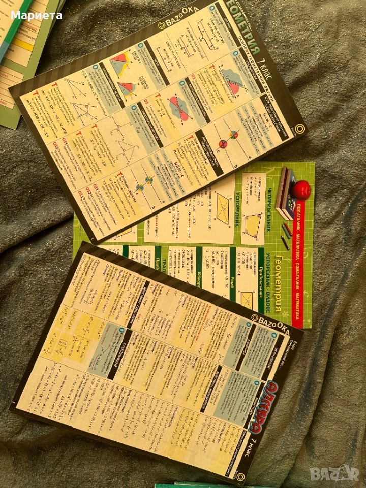 Предлагам няколко вида помагала за подготовка по Математика, География и История. Помагалата са използвани, но няма нищо писано по тях или дефекти. Комплект за всички материали 20 лв