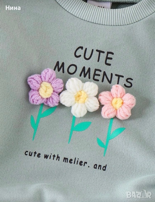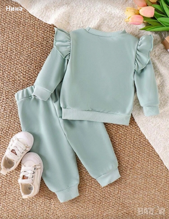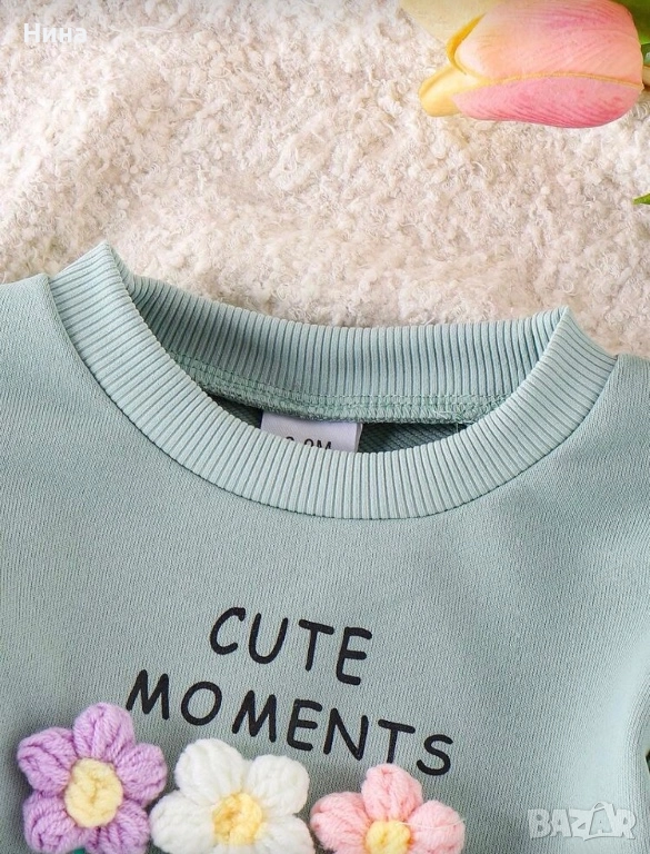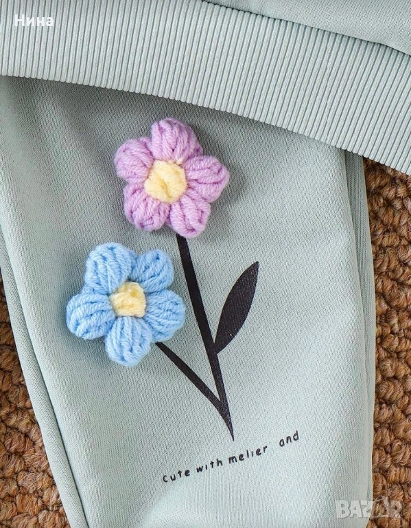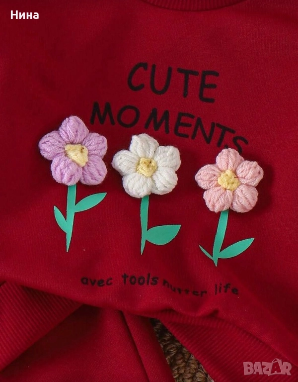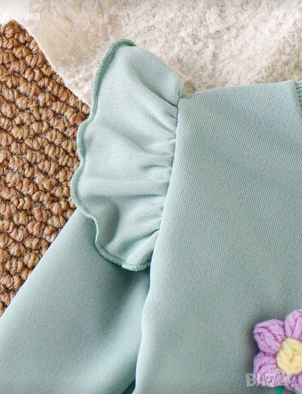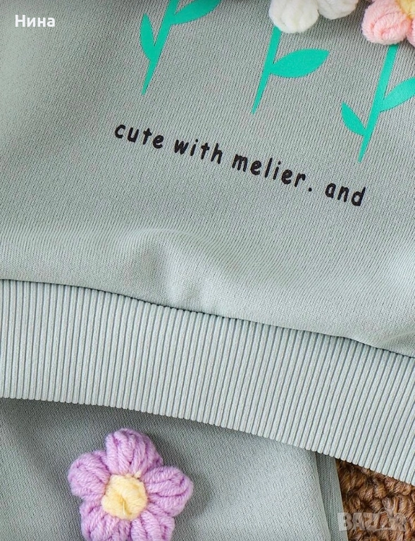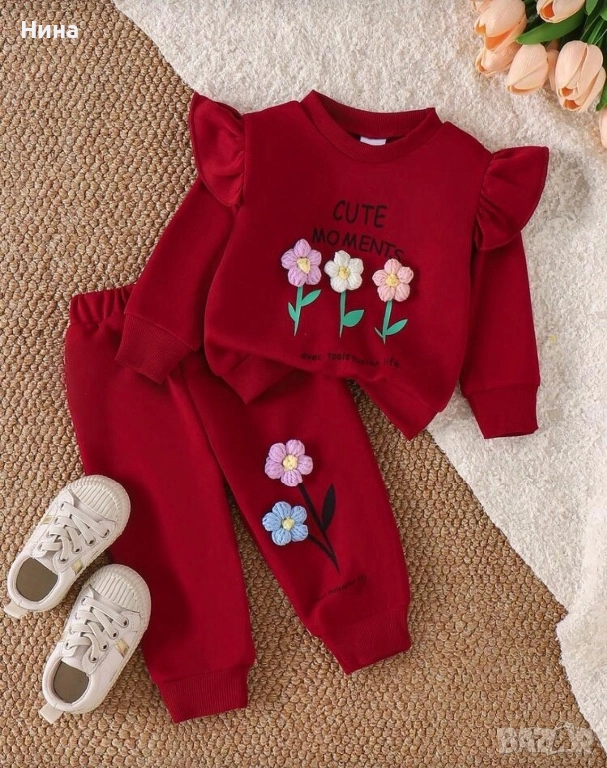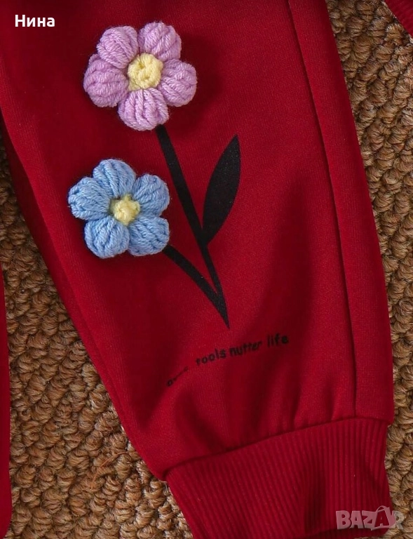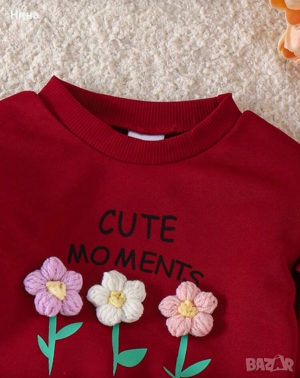Модерен детски комплект за момичета. Декориран с красиви цветя, идеален за ежедневие, разходки или специални поводи.