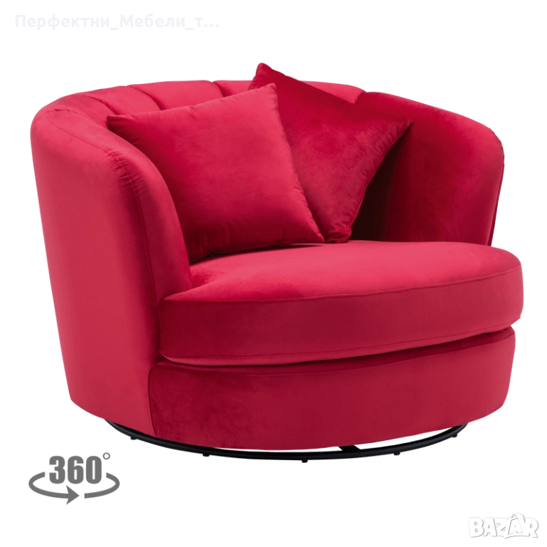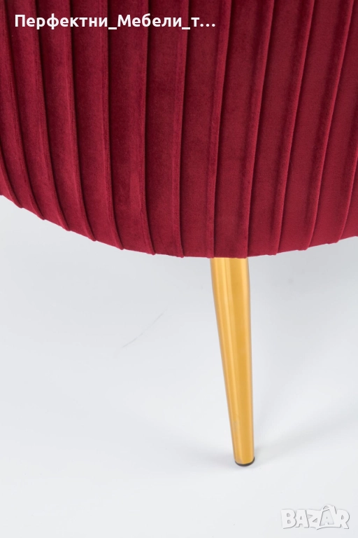 Мек и нежен плюш в цвят бордо,стабилна и удобна конструкция на креслото,луксозна визия с изчистени стилни детайли.