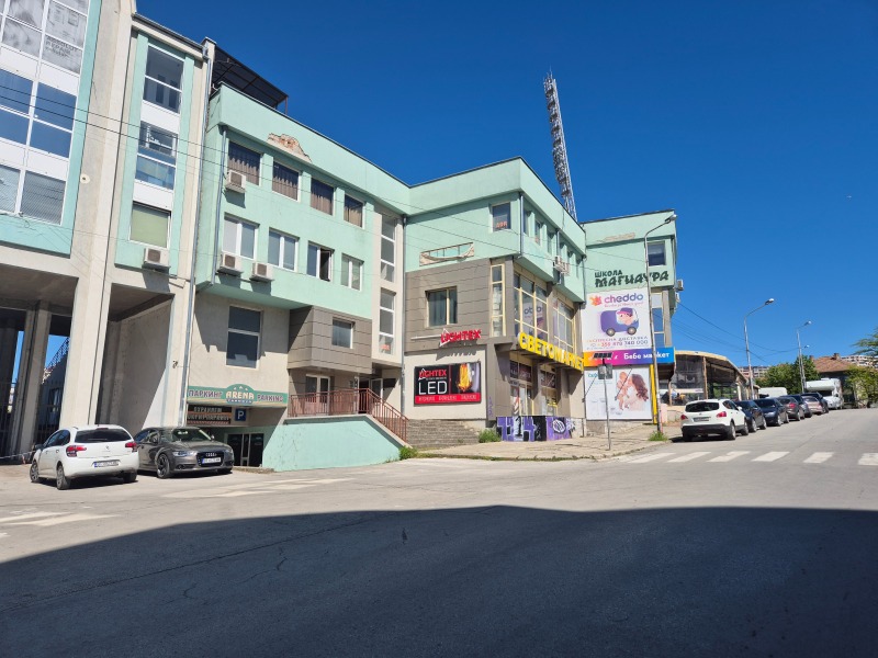 Търговски обект от сграда 'Североизточен сектор на стадион 'Ивайло', обособен частично под стъпалата на източния сектор на стадиона, с вход от ул.'Славянска', в съседство с търговски обекти, заведения, в близост до ПМГ 'ВасилДрумев', с предназначение: ДИСКОТЕКА, с обща застроена площ 1033,40 кв.м, на две нива, включваща: първо ниво на кота +6,50: зала за посетители, обслужващи и сервизни помещения, със застроена площ 536,00 кв.м, склад със застроена площ 186,00 кв.м, вход дискотека със застроена площ 36,70 кв.м; второ ниво на кота +9,05: офис със застроена площ 20,70 кв.м; на кота +9.20: галерия, със застроена площ 21,30 кв.м, коридор към авариен изход със застроена площ 30,70 кв.м, заедно с 50,6420% ид.части от общите части от общоползвани площи за входа и стълбището на кота+9.20, заедно със съответните на този имот 16,3735% ид.части от общите части на сградата и право на строеж върху 1077,38 кв.м върху УПИ XIII, кв.28 по ПУП на града, целият с площ 1792 кв.м. Имотът е с частично естествено осветление от юг, без изпълнени довършителни работи, с възможност за решение на вътрешното разпределение и интериорен дизайн, отговарящ на изискванията на новия собственик.