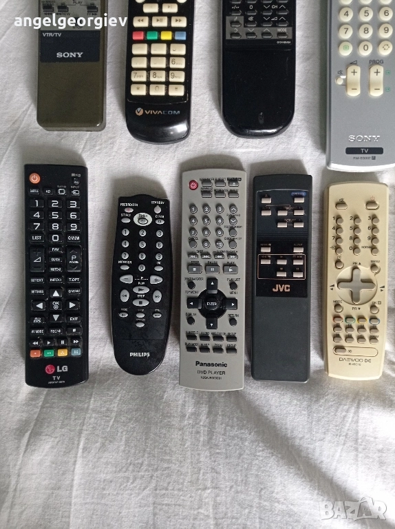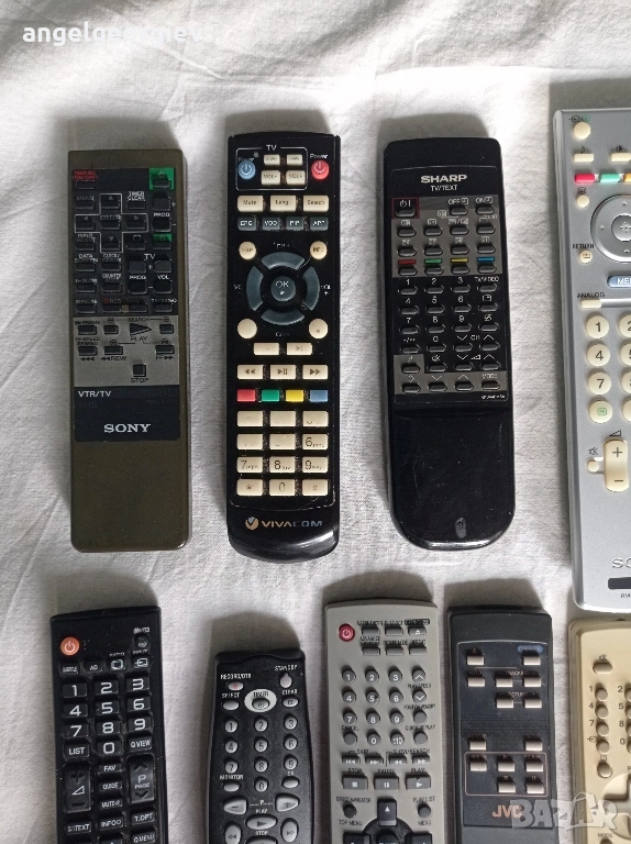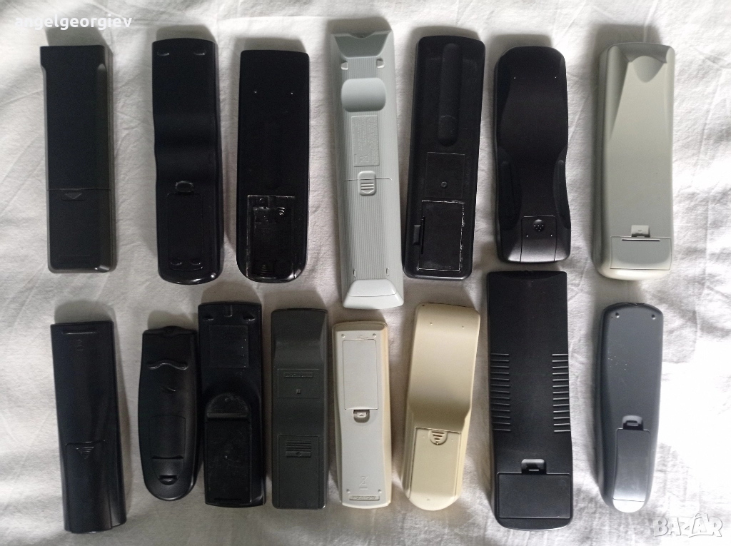 15 броя различни дистанционни. Добър външен вид. Не са тествани. Само едно е без капаче за батерии. Цената е за всички заедно, не се продават поотделно.