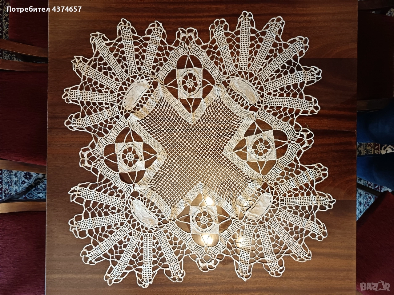 Ръчно плетена покривка , снимка 1 - Покривки за маси - 52654093 Ръчно плетена покривка , снимка 2 - Покривки за маси - 52654093 1/2