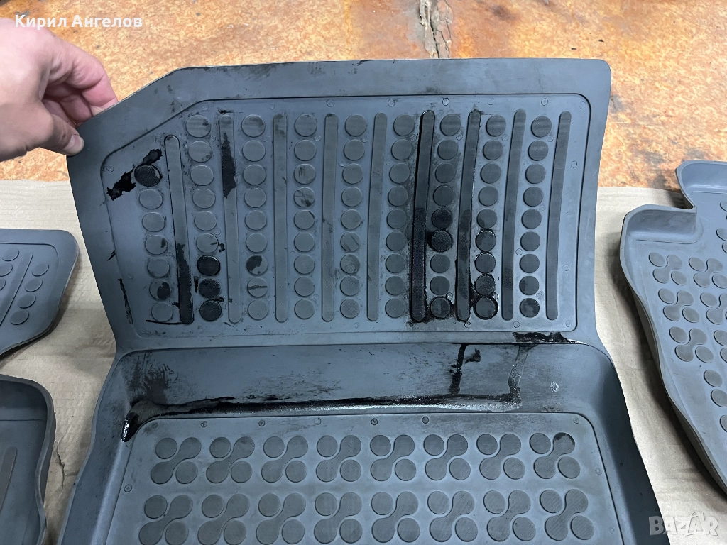 Продавам гумени стелки за БМВ Е46 Е90 (сиви). Състоянието им се вижда на снимките. Предна дясна е изцапана с моторно масло .Пробвах да я изчистя ,но без успех.