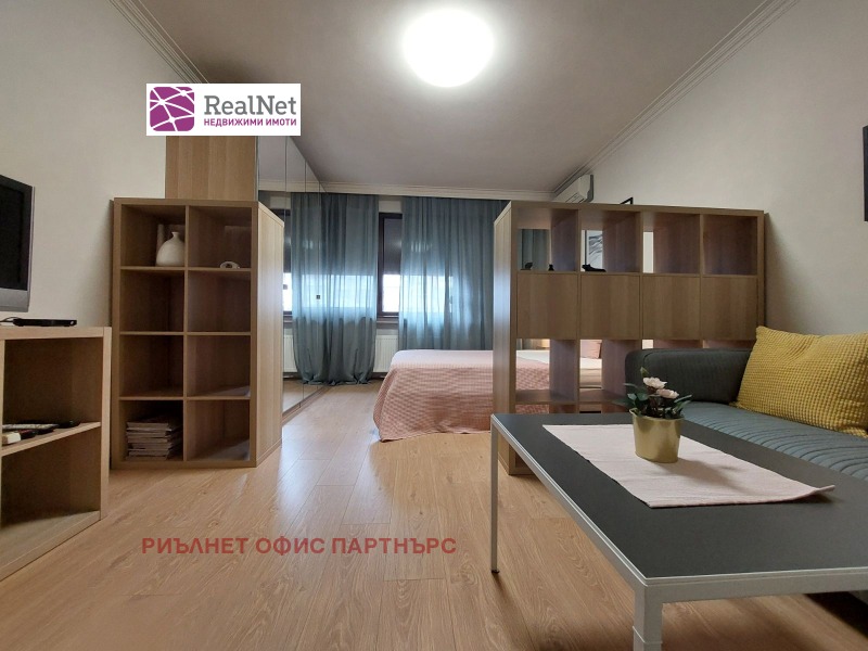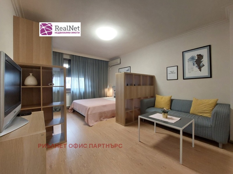 РиълНет офис Партнърс дава под наем елегантен едностаен апартамент на ул. Хр. Ковачев до ул. Стара планина с външно паркомясто включено в цената. В близост са идеален център, ИСУЛ, парк Заимов, Първа Английска гимназия. Недалеч от Докторски паметник, Софийски университет, метро. Състои от стая с дневна и спална части, кухня, баня с тоалетна и антре. Напълно обзаведен и оборудван с всичко необходимо за вашето удобство. За пълен комфорт на наемателите е поставен климатик в стаята, прозорците са с автоматични щори. Източен, среден, светъл и топъл апартамент с ниски сметки. Мазе около 4 кв.м. Сградата е без асансьор. Възможност за допълнително наемане на гараж. Очакваме наематели непушачи и без домашни любимци.