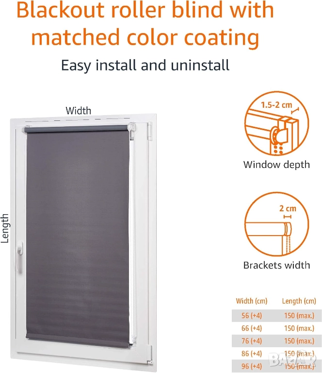 Размер: 86 см ширина × 150 см височина — подходящ стандартен размер за прозорец.