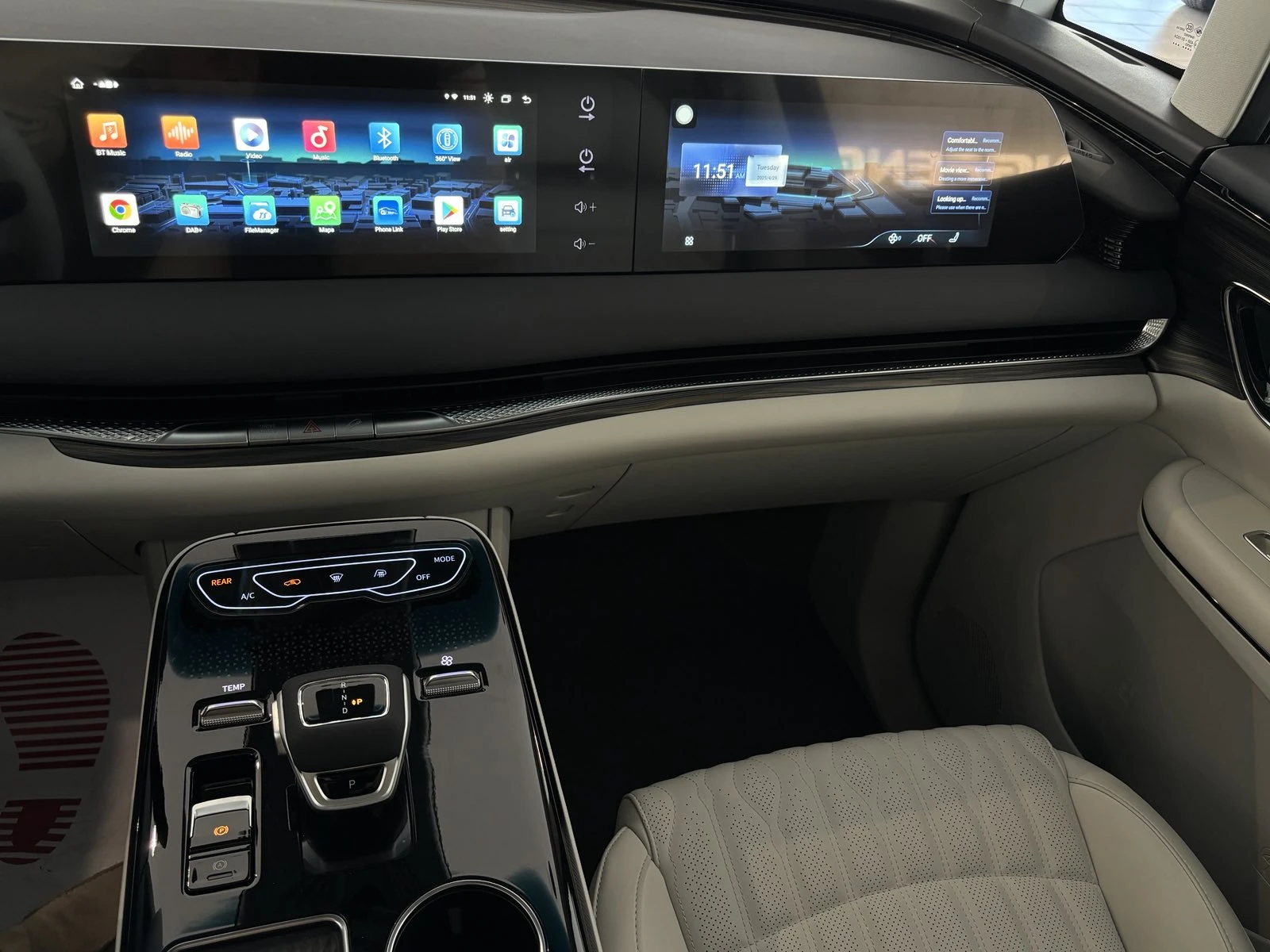 Посочената цена е с ДДС. Възможност за финансов лизинг. Гаранцията на автомобила е 7 години или 150 000 километра, което настъпи първо от дата на регистрация. Технически характеристики: Размери: Дължина - ширина - височина (мм) - 5251*1920*1810 Колесна база (мм) - 3018 Гориво - Бензин Обем багажник - 480л. Обем резервоар - 60л. Режими на шофиране - Normal/Sport/ECO Двигател - TZ220XYK/ Батерия 2kw/h 300(V) Работен обем (л) - 1498 Максимална мощност (кВ) -130 кВ / 5500 Нм / 175 к. с Номинална мощност (кВ) - 125 кВ / 5500 Нм / 170 к. с Максимален въртящ момент (Нм) - 300 Нм /1500-3500 об/мин Тип на трансмисията - Автоматична скоростна кутия e-CVT Евро норма - EURO VI Ходова част Предаване - Предно Предно окачване - Независимо окачване MacPherson Задно окачване - Независимо Multi-Link Спирачки - Предни вентилирани дискови и задни дискови Управление - EPS (Електрическо серво управление) Гуми - 225/55 R18 ОБОРУДВАНЕ НА АВТОМОБИЛА: ЕКСТЕРИОР Предни адаптивни FULL LED светлини с автоматично активиране и отложено деактивиране Дневни LED светлини, LED мигачи, LED трета стоп светлина Електронно регулиране на фаровете по височина LED комбинирани задни светлини, двойни за заден ход Електрическо задвижване на вратата на багажника отваряне и затваряне Защитна кора под двигателя и купето Допълнителна шумоизолация на предния капак Задно крило Декоративни стоманени ленти с лого за праговете на предни и задни врати Декоративни хромирани елементи Тонирани стъкла за втори и трети ред седалки + багажна врата Дискретна антена за радио и GPS ИНТЕРИОР Мултифункционален кожен волан, регулируем в 4 посоки; Тапицирани сенници за шофьора и пътника до него, с огледала и LED подсветка LED осветление в салона и багажното отделение с отложено деактивиране Многоцветно амбиентно осветление Дръжки на тавана за пътника отпред и задният ред седалки 12. 3 -инчов LCD дисплей - инструментално табло; 12. 3- инчов LCD дисплей централна конзола мултифункционален 12. 3 -инчов LCD дисплей пътник отпред - мултифункционален; HiFi аудио уредба с 8 високоговорителя, DAB радио, видео плейър, Bluetooth, WiFi, Car Play & Android Auto, Type C USB връзка СИГУРНОСТ И БЕЗОПАСТНОСТ Airbags фронтални, странични и тип завеса предпазни въздушни възглавници Триточкови предпазни колани със звуково предупреждение и предварително затягане ABS система против бликиране на колелата при спиране EBD електронно разпределение на спирачното усилие HBA спирачен асистент ESC система за динамично стабилизиране TCS система против превъртане на колелата HAS система за потегляне под наклон HDC система за спускане по стръмен наклон; ARP система против преобръщане TPMS - система за мониторинг на налягането в гумите; Заключване на задните врати за детска безопасност; Сензори за паркиране предни и задни; 360 панорамна камера при паркиране с динамично следене на треакторията назад; Система за разпознаване на пътни знаци Система за подпомагане при внезапно спиране FCW система за предупреждение за сблъсък AEB автоматично спиране при опасност ACC адаптивен круиз контрол LDW система за предупреждение при напускане на пътната лента TJA система за подпомагане при попадане в задръстване Система за подпомагане при попадане в стеснен път СЕДАЛКИ Конфигурация на седалките 2+2+3 (първата и втората двойка могат да бъдат хоризонтално сгъвани; Седалка водач - с ел. регулиране в 10 посоки подгряване, вентилация, лумбална опора, масаж; Седалка пътник отпред - с ел. регулиране в 8 посоки подг