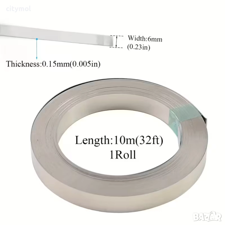 Никелова лента за акумулаторна точкова заварка 0.15 х 6 мм дължина 10м
