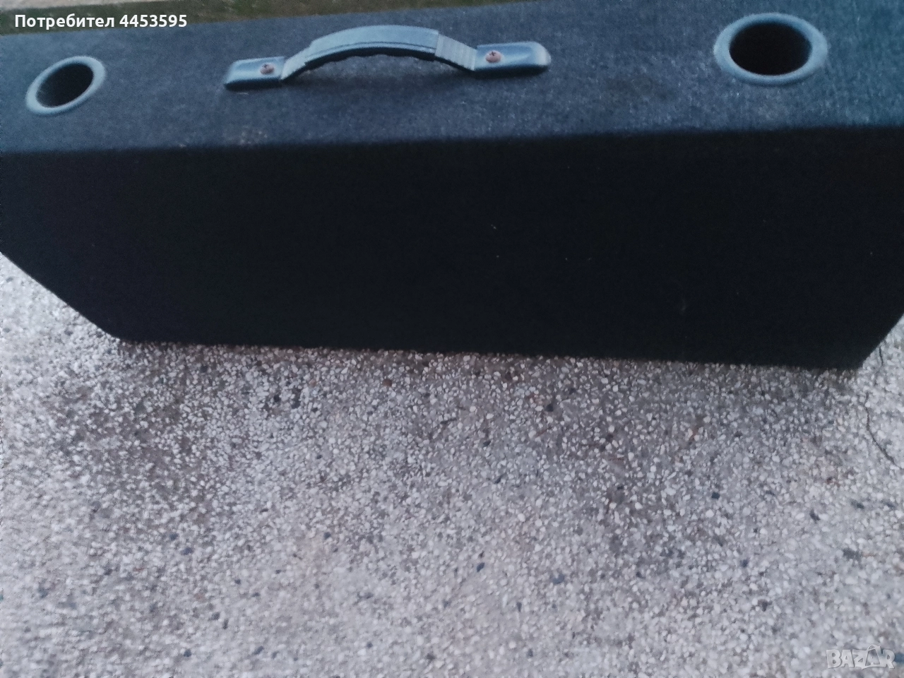 Перфектна каса пасва на всеки багажник има си дръжка за лесно носене може да се ползва в кола ,бусс или у дома навсякъде може има и от двете страни входове двойни басьорки двойни пищялки басйорките не свирят незнам от какво е нямат късано гофрите са здрави затова е на тая цена....