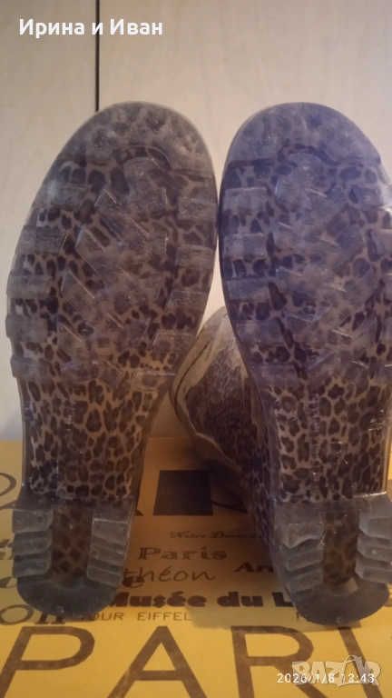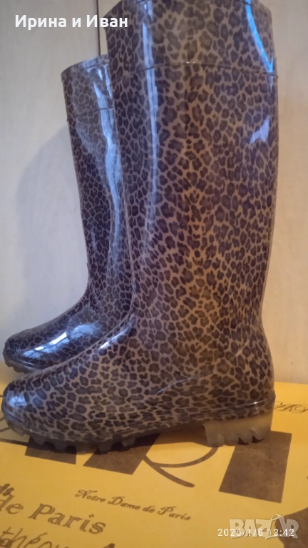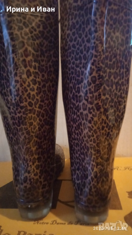 Дамски силиконови ботуши с леопардов принт, носени три пъти, няма забележки, изглежда като нови. Стелка 23,8см, височина 34см.