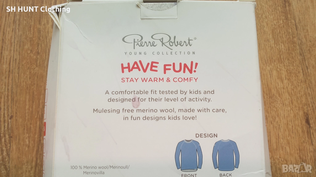 Марка: Pierre Robert Kids Thermo 100% Merino Wool - детска термо блуза 100% Мерино вълна L245-6 Размер: 5-6 години / 110 - 116 см височина - ширина под мишниците 34 см , разтяга се до 50 см , дължина 48 см.