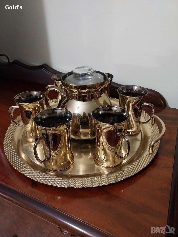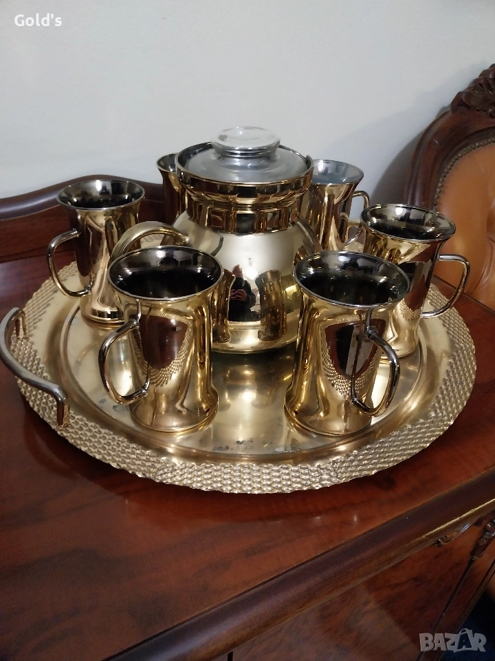 Уникален сервиз на Бохемия за чай,кафе, състоящ се от 6високи чаши и кана с филтър