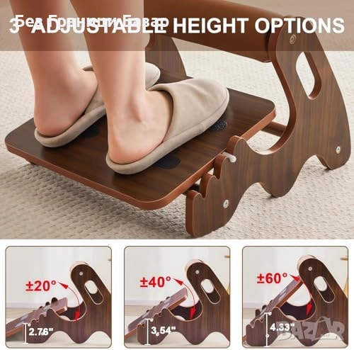 Нова Регулируема дървена поставка за крака – ергономичен дизайн, 3 нива