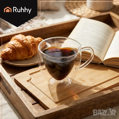 Чаши за кафе с двойно дъно - сърце / Стъклена термо чаша с двойно дъно