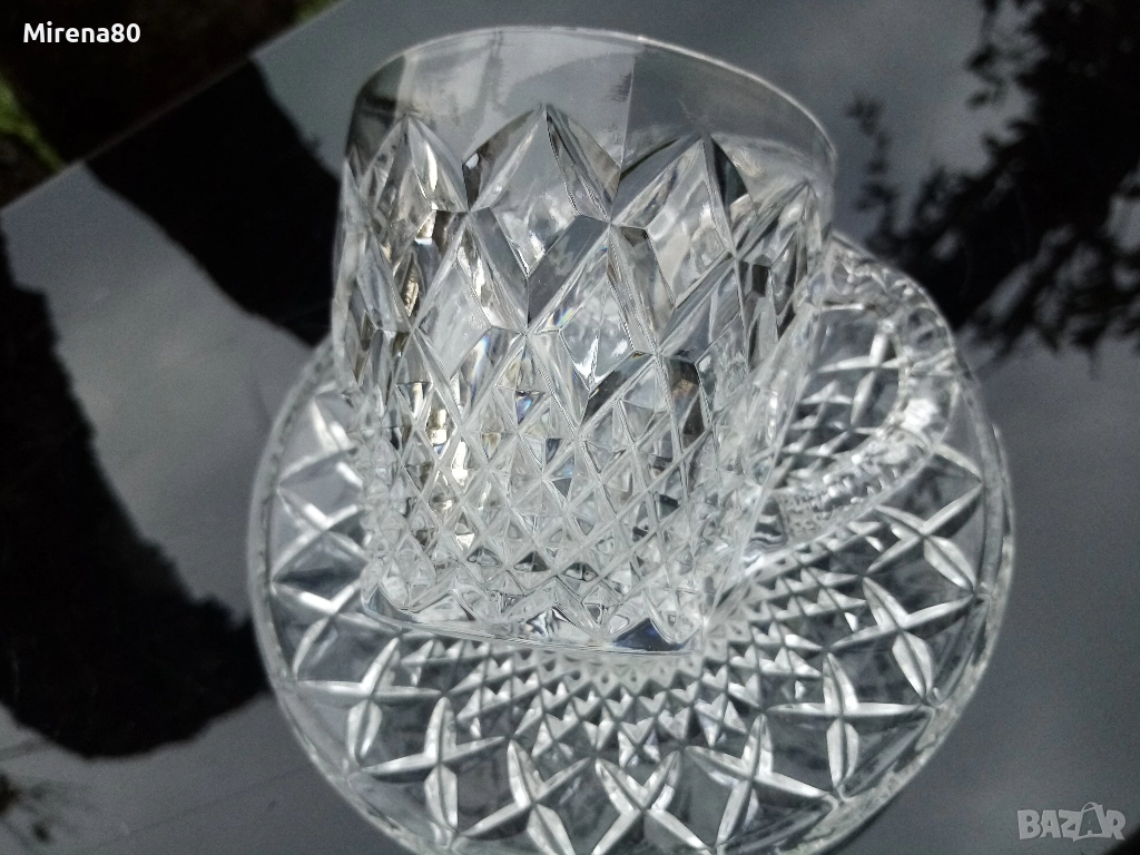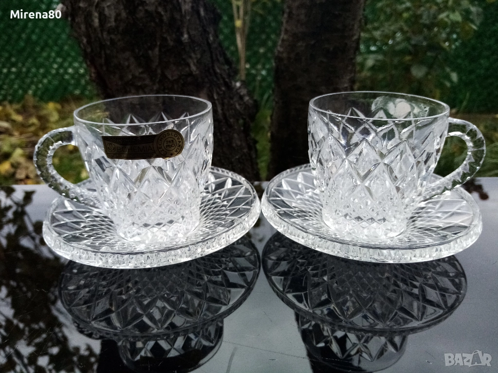 Комплект от 2 броя кристални чаши с чинийки. Произведени в
