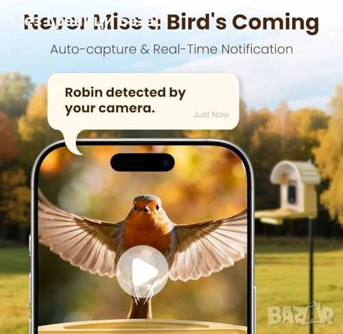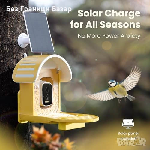 Нова соларна Смарт хранилка за птици с 2.5K камера и AI разпознаване
