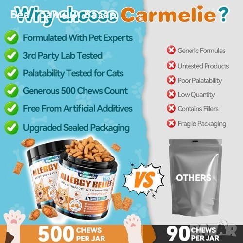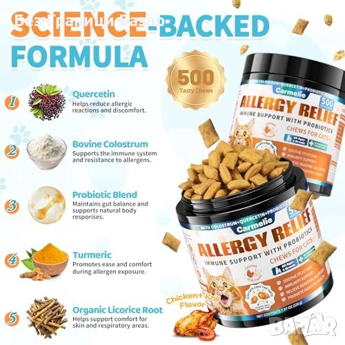 Нови Хапки против алергии за котки с коластра и пробиотици 500 броя