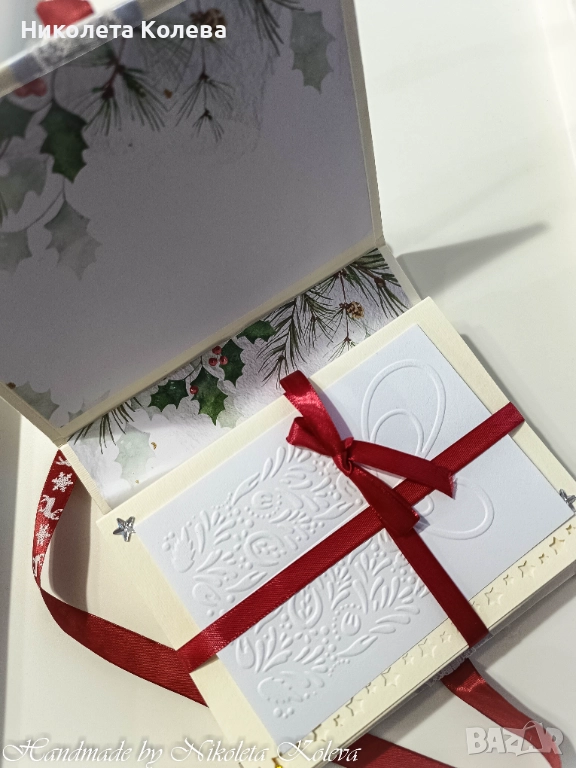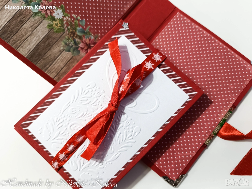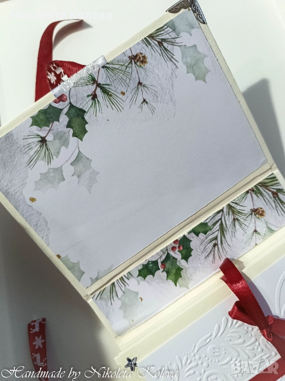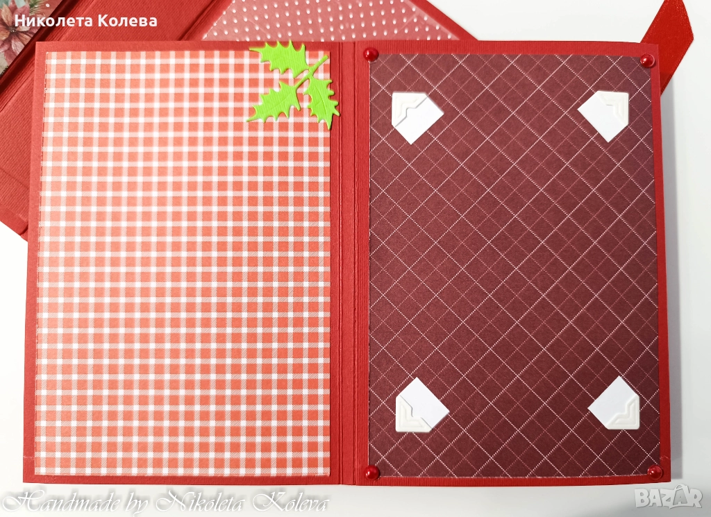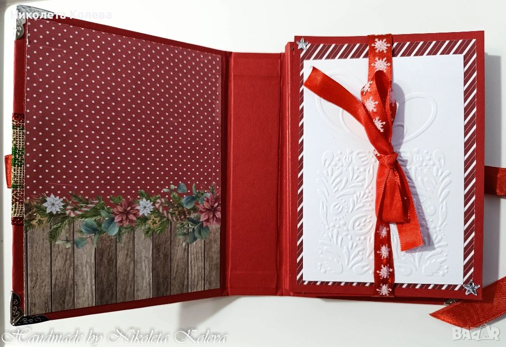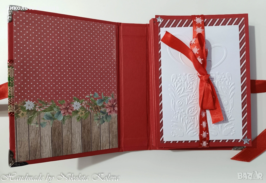 Коледни албуми - тип хармоника в червен цвят и в екрю.