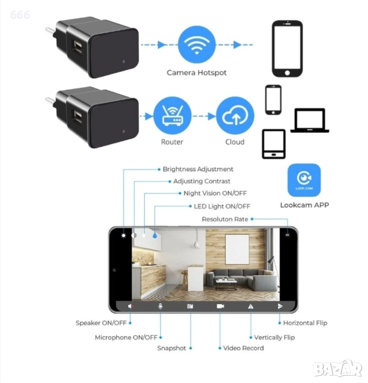- Съвместимо мобилно приложение за Android/iOS: LookCam