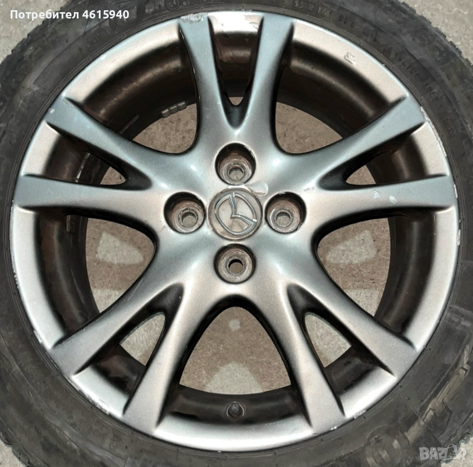 4х100мм MAZDA МАЗДА 4бр оригинални алуминиеви джанти 16" J6.5" ET50+4брвсесезонни гуми 195/55/16 → Обява 52655897