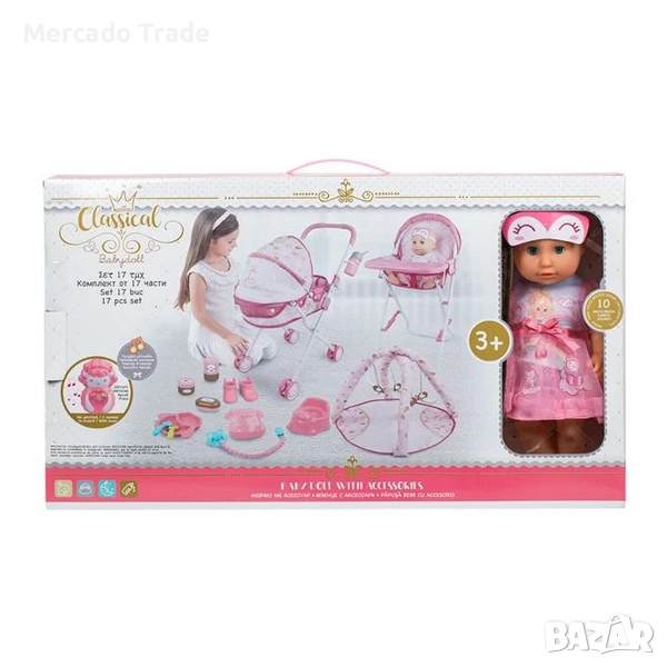 Комплект за игра с кукла, количка, столче & аксесоари със звуци