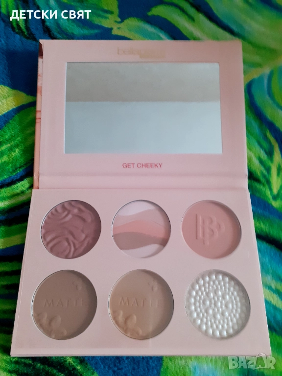Новата палитра за лице "Get Cheeky" на Bellapierre - универсална палитра за лице "всичко в едно", включваща 3 ружа, 2 матови бронзанта и 1 хайлайтър, всички в гладка, лесно смесваща пудрена формула.