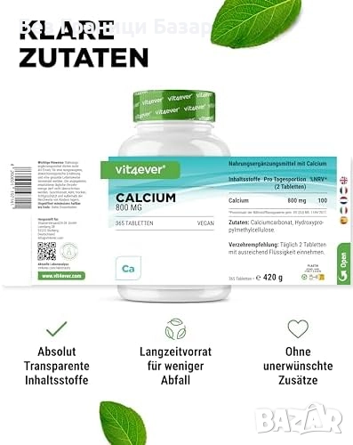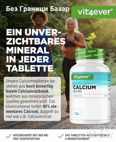 Нови Високодозирани таблетки Калциев карбонат 800 mg – 6 месеца снабдяване, без добавки