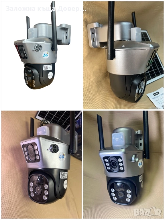 Мрежова връзка: безжична-РЕАЛНА СКОРОСТ 4G Не 3G !! Както са повечето конкурентни камери– SIM карта (камерата работи със SIM карта към всички български оператори