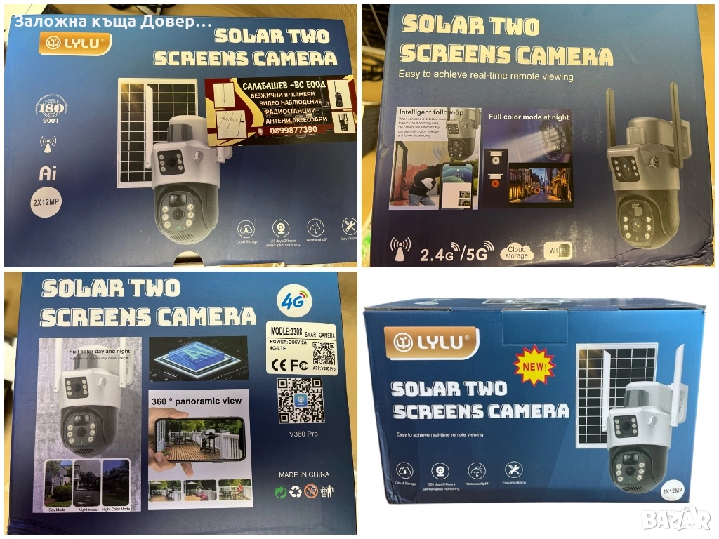 Последен модел 2025 LYLU Двойна соларна камера със сим карта 2x 12 mpx 4G sim работи с всички оператори