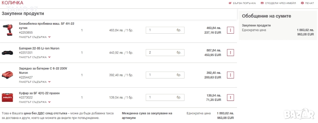 Магазинската цена на комплекта е: 1 883лв. БЕЗ ДДС (С ДДС е 2 259лв)