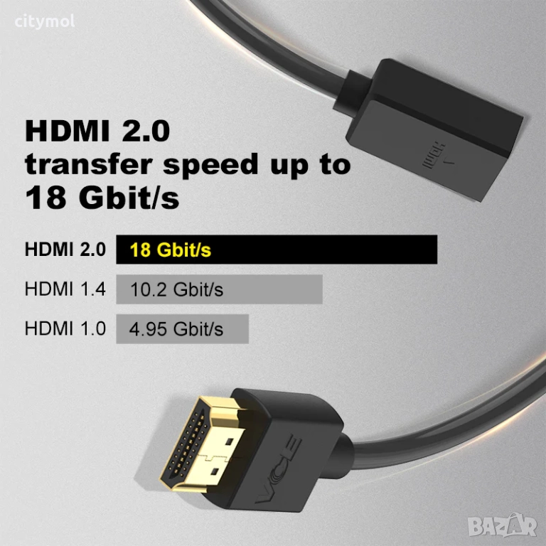 Удължителният HDMI кабел VCELINK е проектиран за лесен монтаж и надеждно предаване на сигнала във всяка аудио и видео система. Преносимият HDMI удължителен кабел с позлатен конектор осигурява висока издръжливост и предаване; 5-слойното екраниране също така предлага смущения на сигнала.