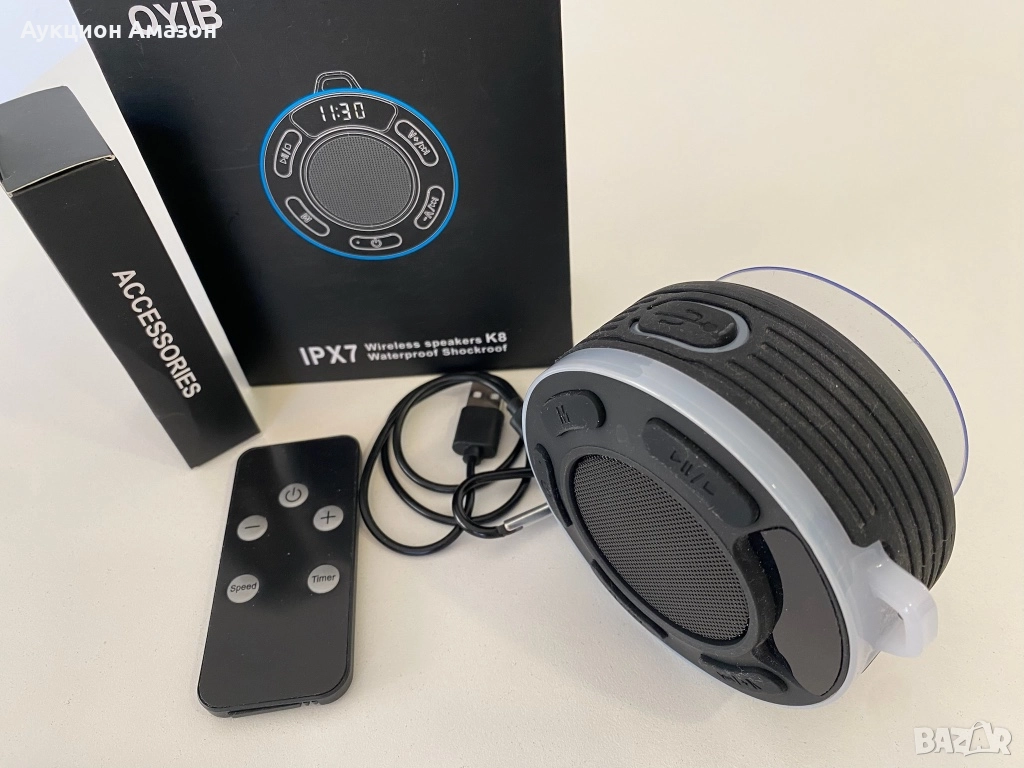 IPX7 водоустойчив дизайн и вендуза. Преносим високоговорител за душ с IPX7 водоустойчив рейтинг издържа на водни пръски, което ви позволява да го използвате безпроблемно при различни метеорологични и външни условия. Като например можете да се наслаждавате на музика в басейна, плажа, банята и други места. Високоговорителят се доставя и със солидна вендуза, която здраво се прилепва към различни гладки повърхности, като стени на баня, стъклени плотове или всякакви други гладки равнини.