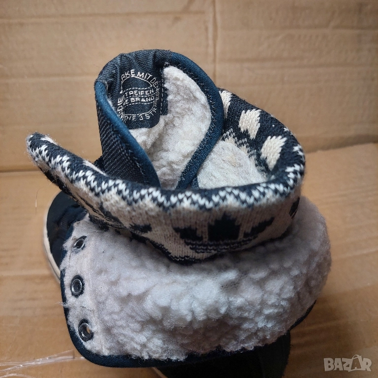 Характеристики: Тези маратонки са високи до глезена, с черна велурена и платнена горна част и топла бяла подплата от изкуствен косъм/плюш.