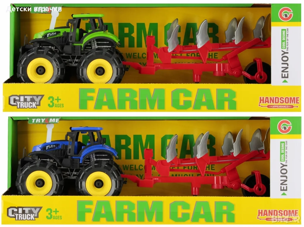 Трактор със селскостопанска машина със светлинни и звукови ефекти.