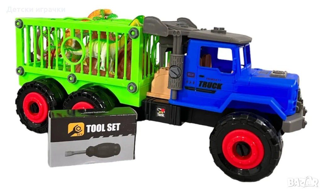 Сглобяем камион играчка с динозаври и инструменти 42см