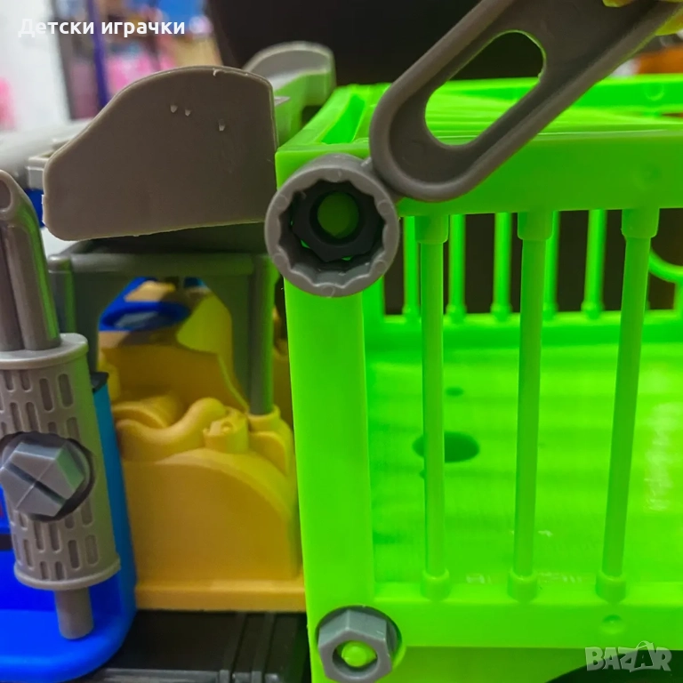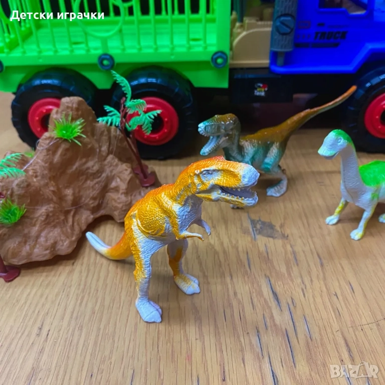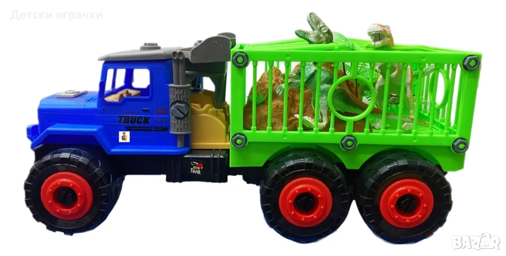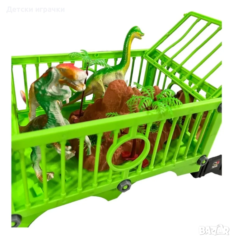 Камион с клетка за динозаври, която може да се сглобява и разглобява. Външният вид на превозното средство е много реалистичен; всяка става може да се движи свободно, а колелата могат да се плъзгат напред и назад с леко натискане.