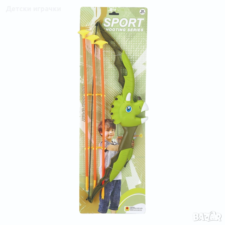 Детска игра за занимания на открито, стрелба с динозавърски лък и стрели.