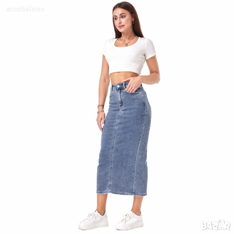 Открийте свежо и стилно допълнение към гардероба си с нашата най-нова дънкова пола, която перфектно съчетава елегантност и комфорт. Тази дреха с дължина midi, изработена от висококачествен деним, се отличава с вечен силует, който ласкае всяка фигура. Дизайнът е семпъл, но универсален, предлагащ широки възможности за креативни комбинации с различни топове. Полата осигурява свобода на движение и оптимален комфорт – идеална за ежедневно носене или за специални поводи. Независимо дали е за спокоен ден на открито или за събиране с приятели, тази пола е перфектна за преходно време и се съчетава прекрасно с маратонки или сандали. Женствените линии и високата талия подчертават естествената ви талия, придавайки ви модерен вид. Проектирана за жени, които следят модата и ценят както стила, така и комфорта, тази дънкова пола предлага безкрайни възможности за създаване на персонализирани тоалети. Тя е задължителна част от всеки модерен гардероб и е идеална за свободното време, офиса или ежедневни вечерни събития.