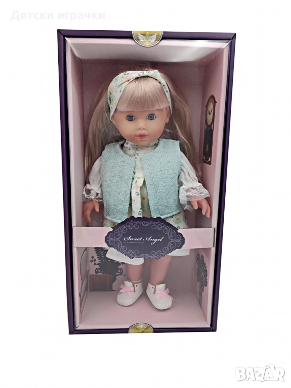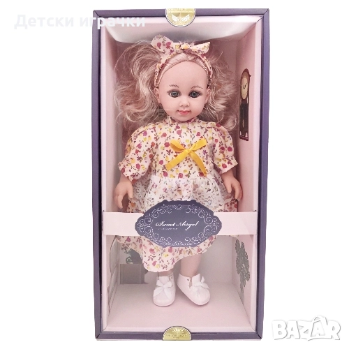 Очарователна кукла 36 см е тук, за да стопли сърцето на всяко дете. Със своето усмихнато личице, мека коса и изискани светли дрешки с флорални мотиви, тя е символ на нежност, стил и обич. Подходяща е за ежедневни игри, гушкане и ролеви занимания.