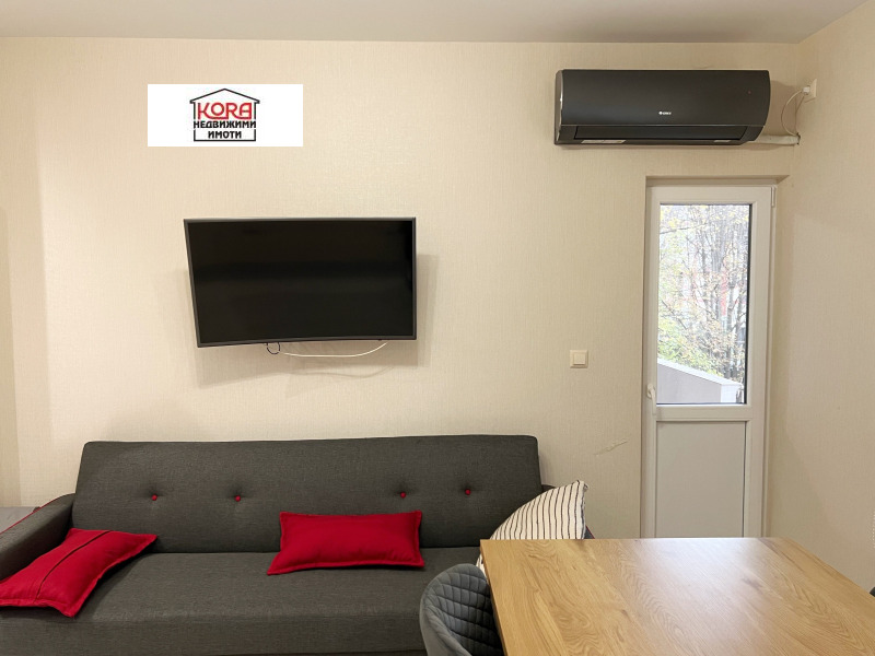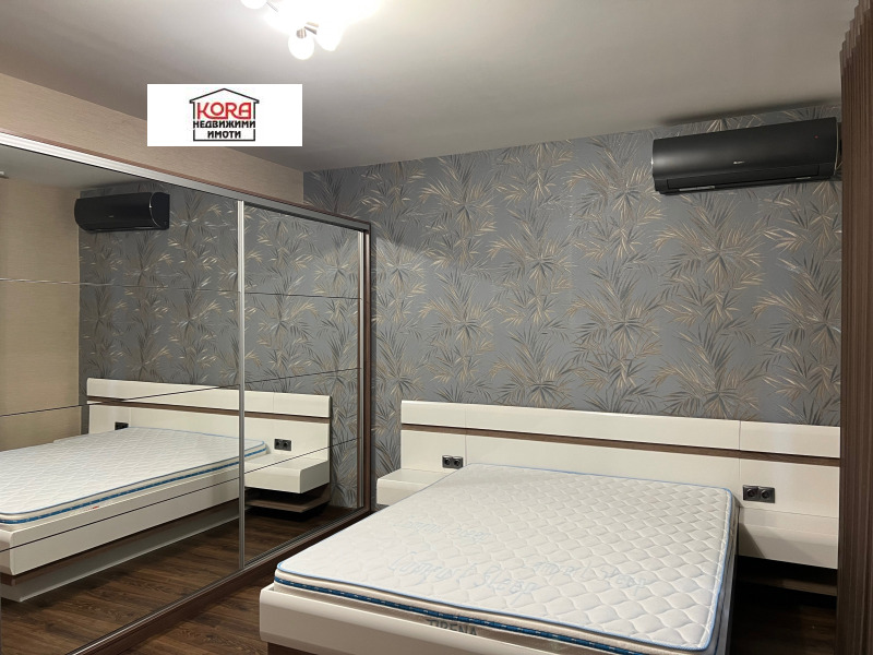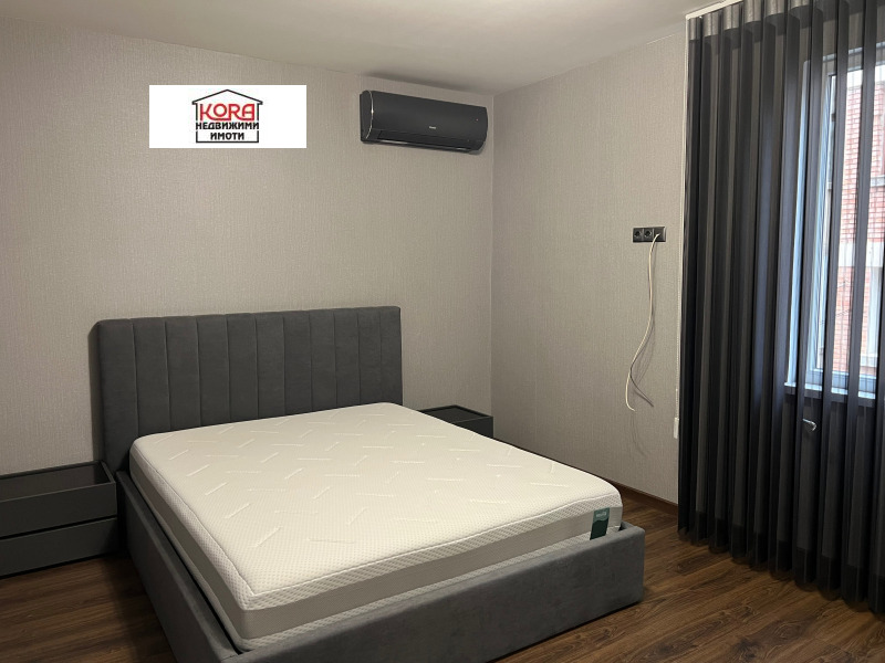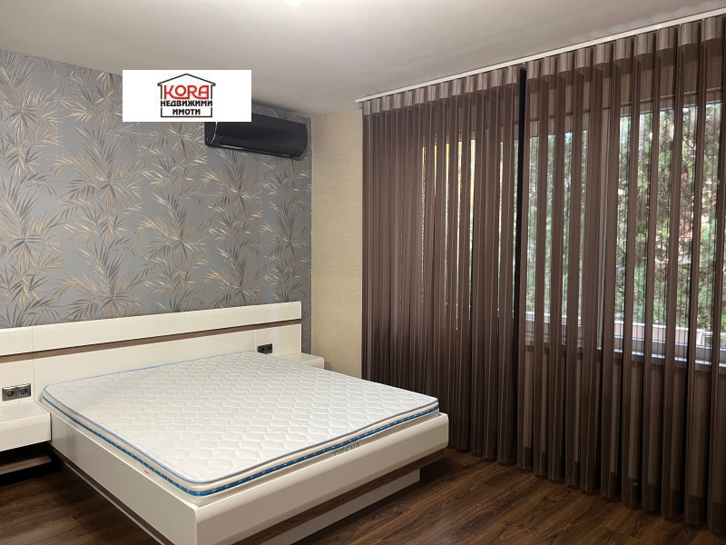 Предлагаме луксозен апартамент под наем, находящ се в малка кооперация в идеалния център на града и на 5 минути от Медицинския университет. Състои се от дневна с трапезария, две самостоятелни спални, баня с мокро помещение, тоалетна и две тераси. Жилището е напълно обзаведено и оборудвано с всички необходими ел. уреди от най-висок клас. Отоплението е на ток, посредством климатици, поставени във всяка стая.