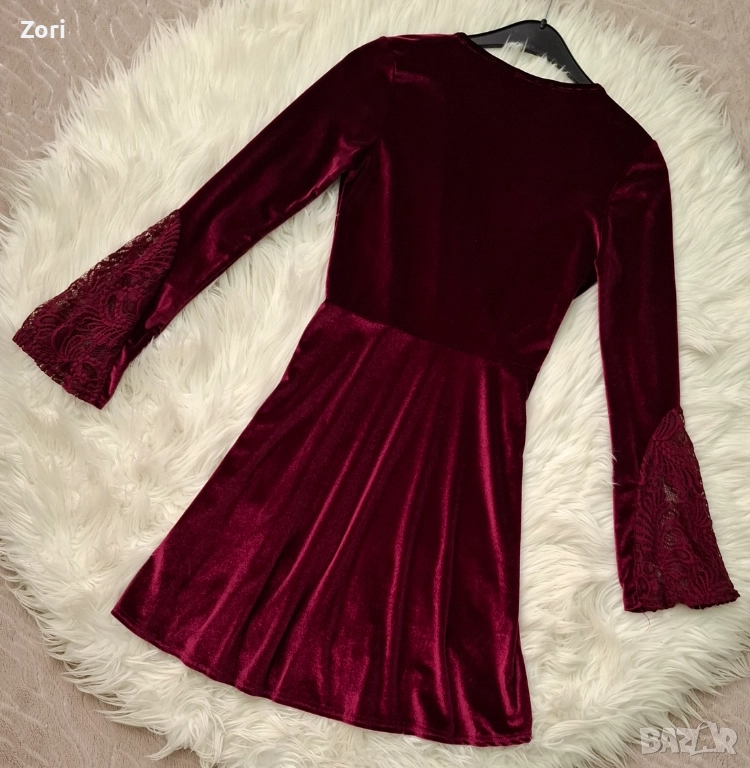 Рокля в цвят бордо от кадифе с дантела → Обява 52658175