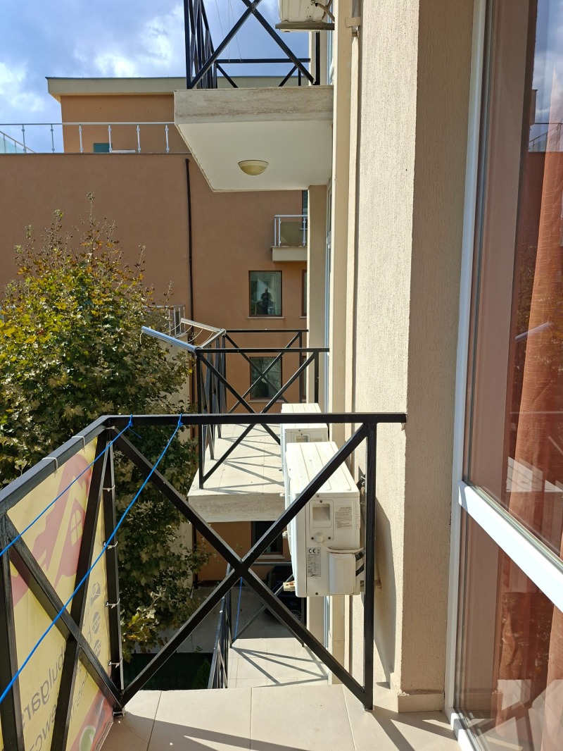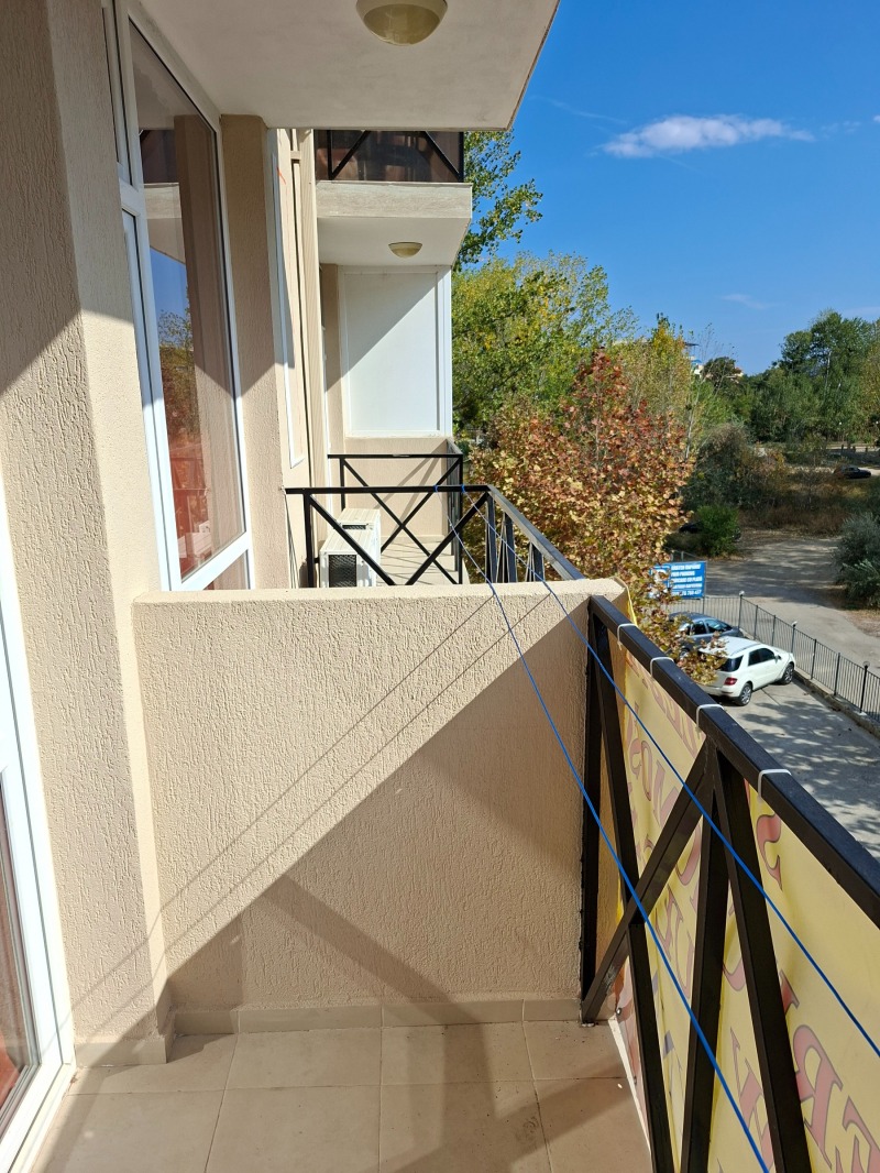 Студиото е с обща площ от 30 кв.м(но с много малко общи части) разположено е на 4 етаж,с южно изложение. Състои се от антре, едно помещение с кухненски бокс и зона за отдих, баня с тоалетна и балкон.Комплекса е с целогодишна жива охрана,собствен паркинг,басейн и детска площадка. Имотът е подходящ за целогодишно ползване, както и за отдаване под наем през летният сезон.